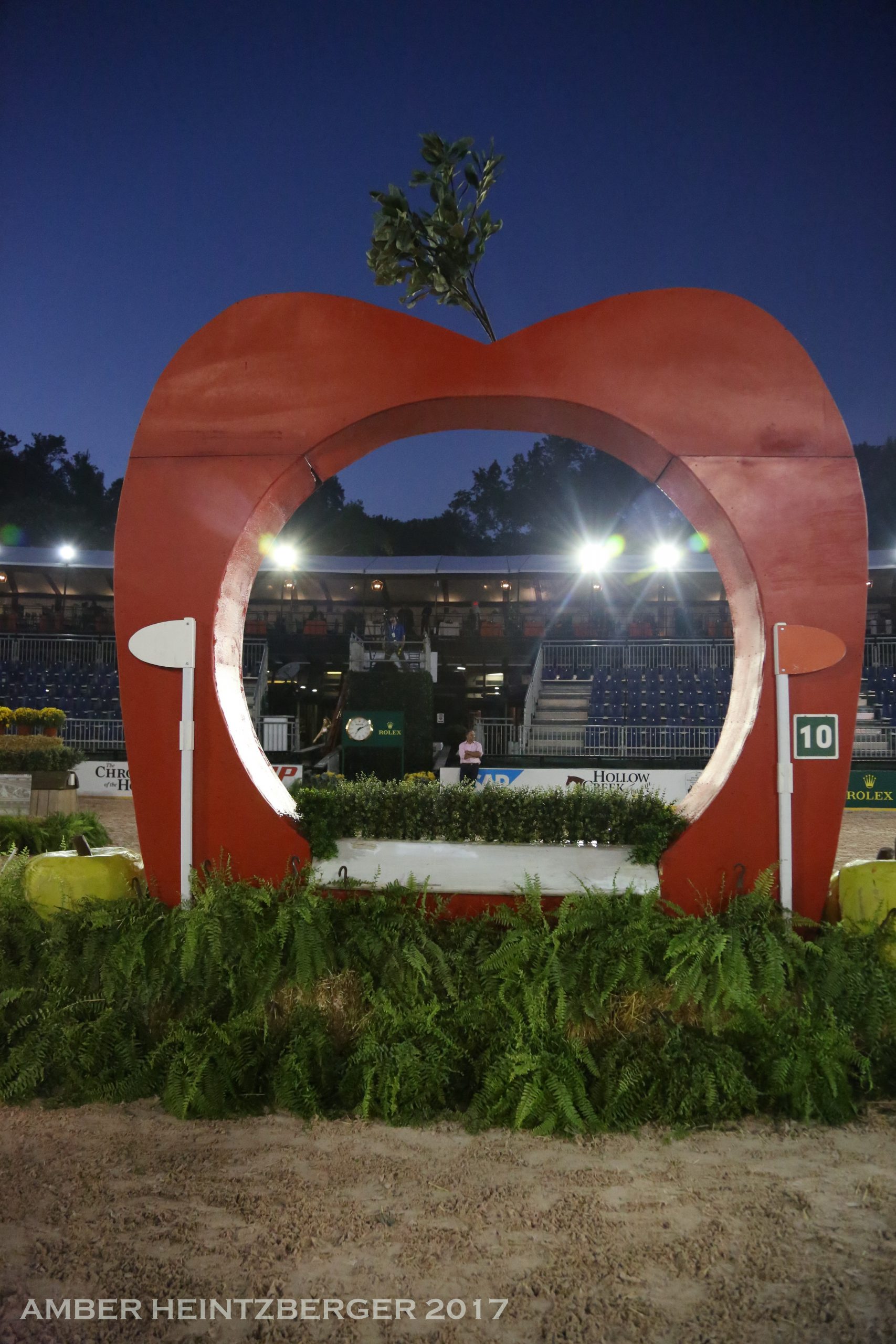 The apple and the bank were built for this, but the rest of the jumps have already been used at Wellington and Tryon. Some horses did crazy things over the bank but it was a good simulation of cross country. That’s what makes the arena eventing exciting and different: the jumpers jump extraordinarily big jumps extraordinarily fast and extraordinarily well. You can’t improve on that unless you add cross country jumps, and the Arena Eventing was really spectacular.