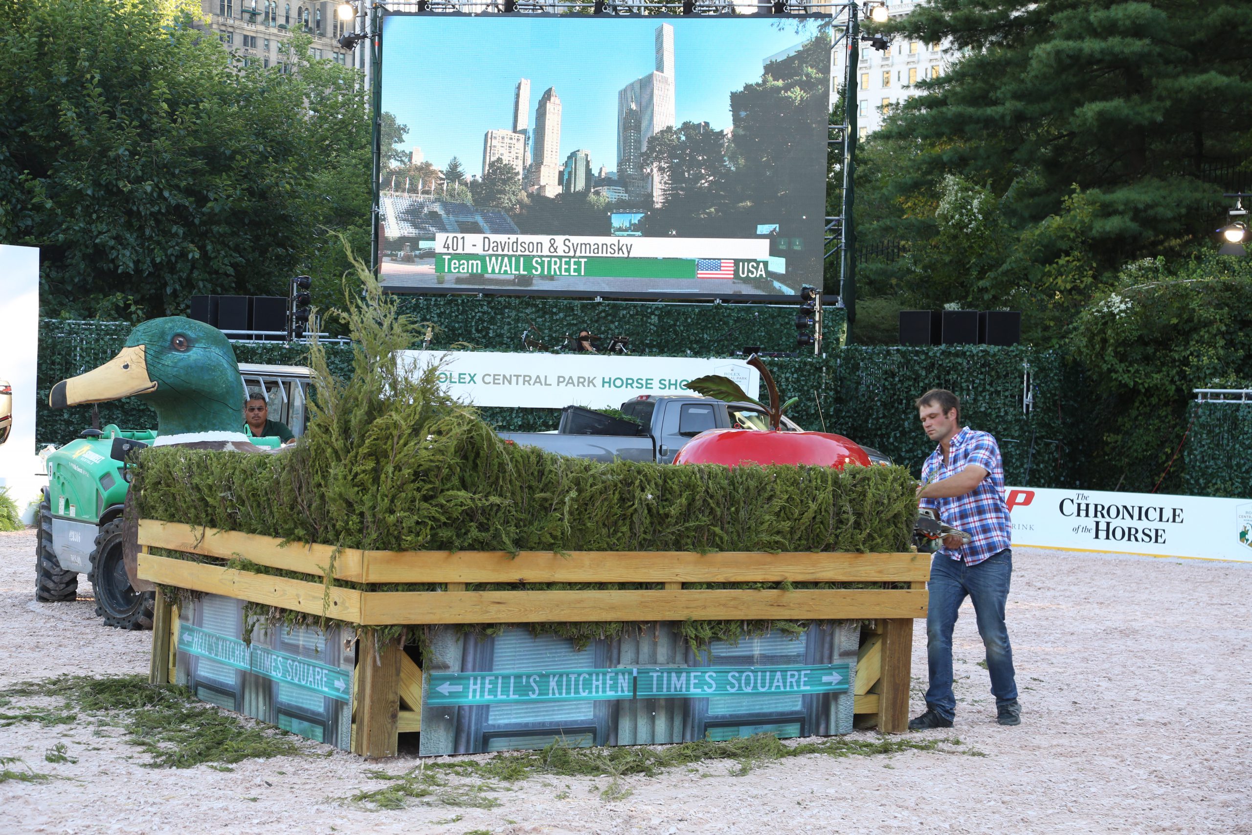 The Central Park Horse Show Arena Eventing Challenge was a major logistical challenge for our crew. We used two 40’ trailers to transport the jumps, because there are some limitations as to what you can bring in to the city – we were 13’6” high and the Lincoln Tunnel is 13’ maximum, so we drove over the George Washington Bridge and then down to Central Park. If these jumps get on the news, we want it to be because they’re great jumps and it was a spectacular night, not because they’re jammed into a tunnel!